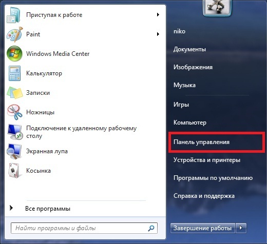 2. Выбираем пункт меню "Панель управления"