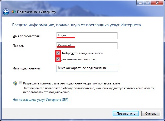7. Вводим логин и пароль, указанные на листе регистрации в разделе VPN или смотрим в личном кабинете - раздел VPN, ставим галочку "Запомнить этот пароль"